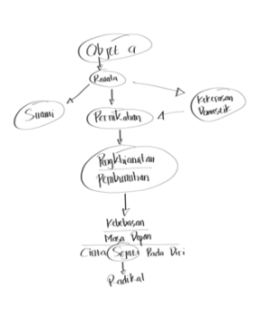 Dalam kerangka Lacan-Žižek ini [Gambar 7], Renata bukan hanya mencari kebahagiaan melalui rumah tangga. Melainkan juga “sesuatu lebih” atau objet a yang tidak pernah hadir dalam pernikahannya—yaitu rasa dicintai, kebebasan, dan masa depan yang lebih baik. Jalan menuju pencarian objet a itu justru hadir melalui pengkhianatan atau pembunuhan, karena hanya dengan membunuh Edwin, ia bisa bebas dari sosok yang selama ini merebut jati dirinya. Lalu, justru melalui pengkhianatan paling ekstrem ini, Renata berhasil mendekat pada bentuk cinta paling murni, yaitu cinta pada dirinya sendiri.